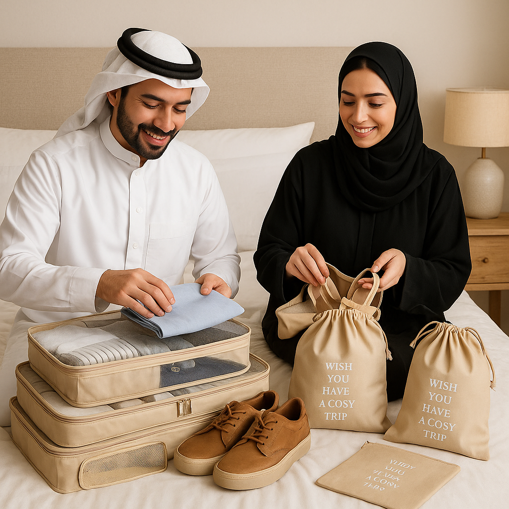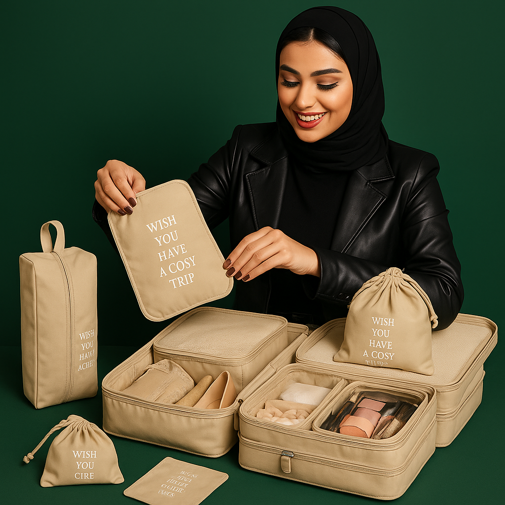 هذا المنتج ينظم لك الشنطة، يحمي الأغراض من الضياع والتجاعيد. بعد ما تستخدمينه، كل شيء بيكون جاهز وسهل.