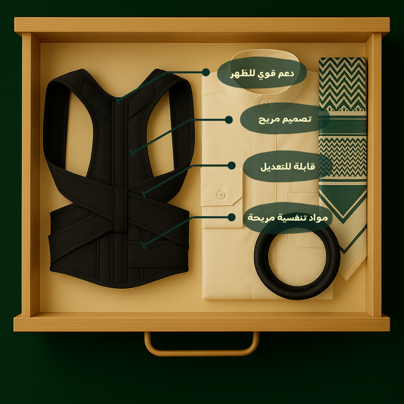 داعم الظهر يحسن الوضعية، يوفر دعمًا قويًا، يخفف من ألم الظهر، يعزز الراحة، ويزيد الثقة مع كل استخدام.