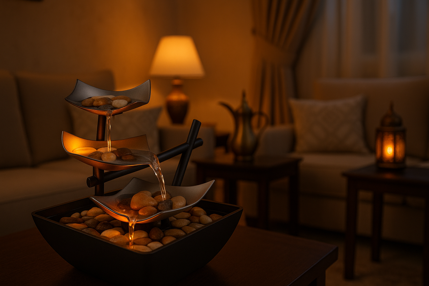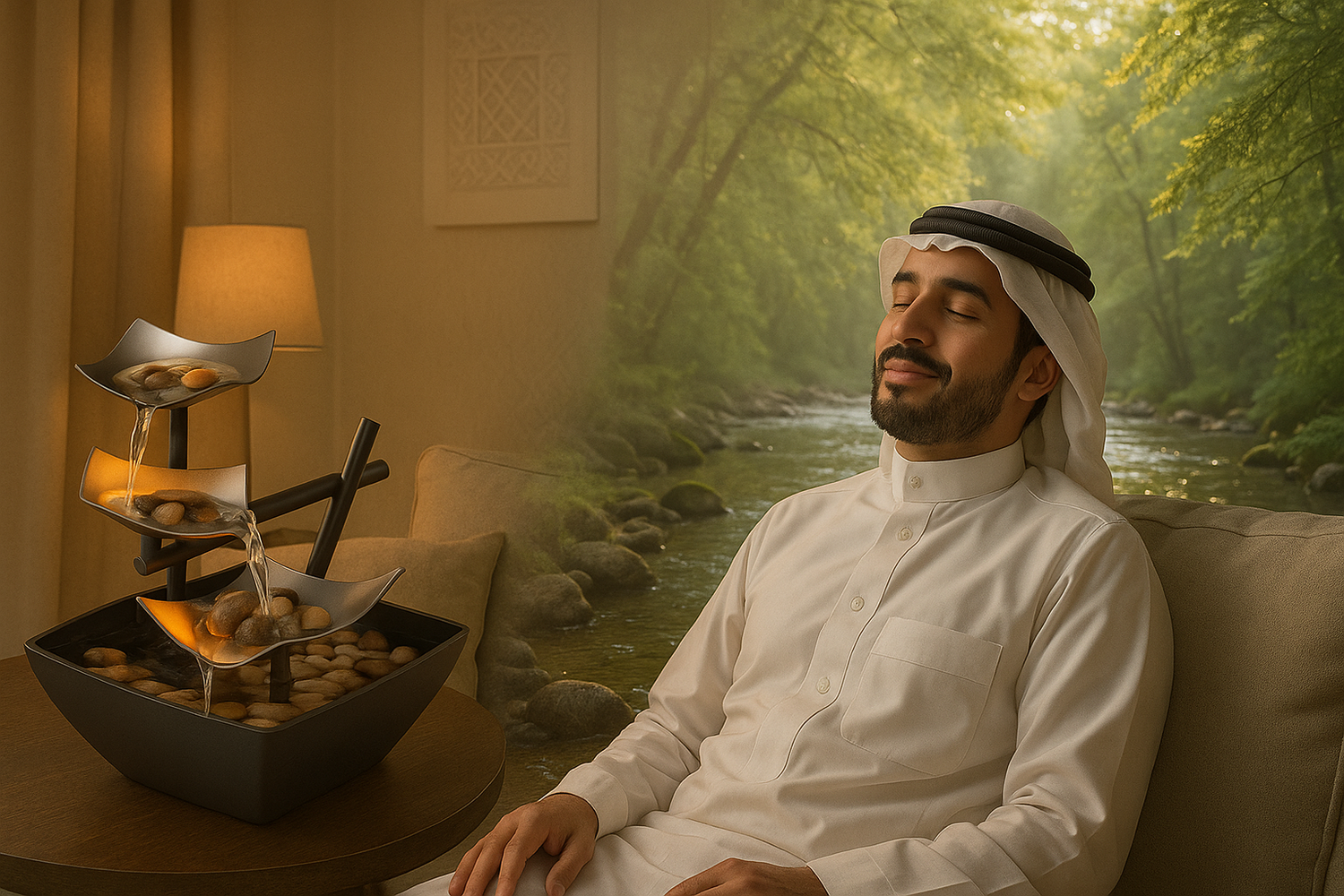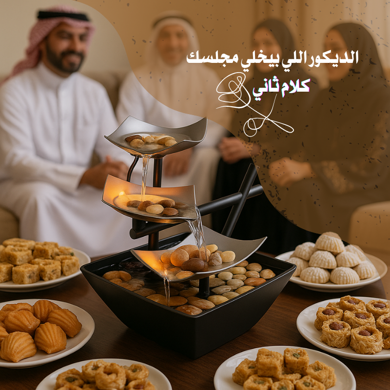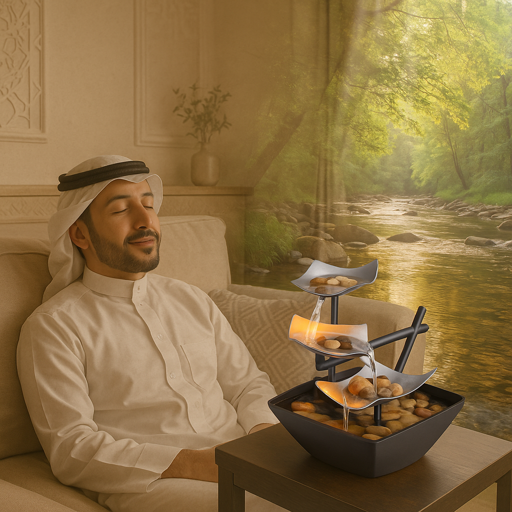 بعد يوم طويل، وش تبغى غير الراحة؟ نافورتنا تشرح صدرك وتخلي همومك تذوب. هذي مو مجرد قطعة، هذي سكينة لبيتك اللي يستاهل جوّ هادي يروق البال. استثمر في راحتك!.