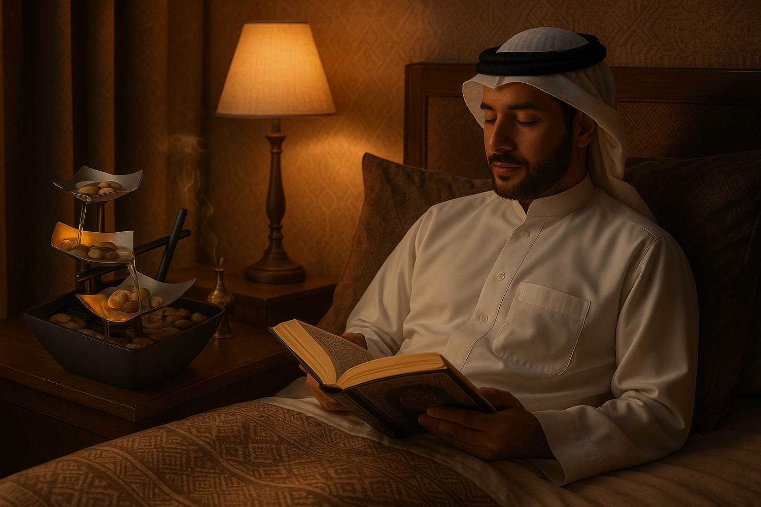 *إضاءة فريدة وساحرة وصوت ماء هادئ.